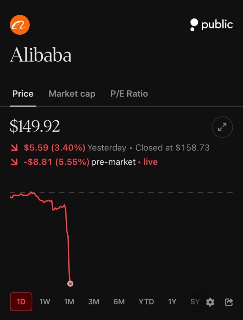 Alibaba (NYSE: BABA) shares slid more than 5% in pre-market on Friday, February 13, following news that the U.S. government is preparing to expand a Pentagon list of companies allegedly supporting the Chinese military.