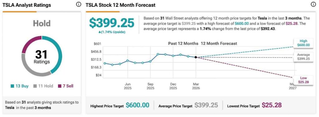 TSLA stock price target. Source: TipRanks