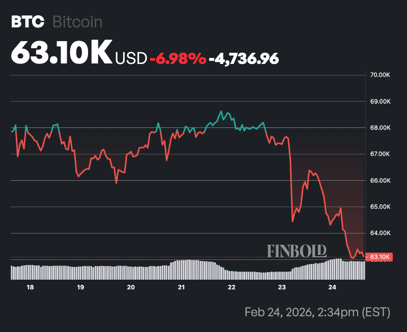 Meanwhile, Bitcoin extended losses Tuesday, slipping further below $65,000. By press time, BTC was trading at $63,158, down nearly 5% in the past 24 hours, while on the weekly timeframe, the asset has fallen more than 6%.