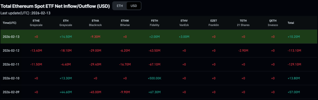 Ethereum spot ETFs also posted significant aggregate redemptions on February 11 and February 12, despite modest positive flows on February 9 and February 10.