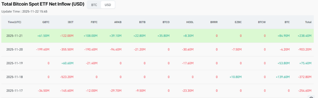 However, there was a brief pause in the sell-off on November 19, when IBIT attracted a $60.6 million inflow, its only positive day of the week.