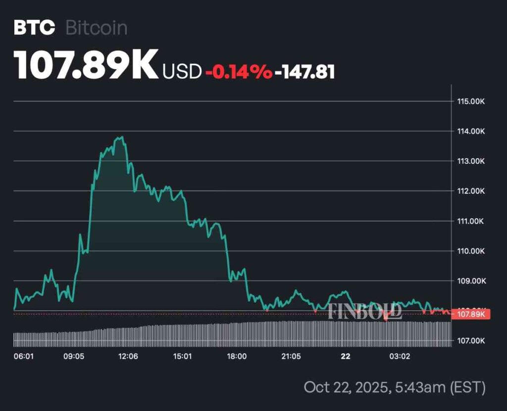 At the time of publication, Bitcoin is trading at $107,890, down 0.14% on the 24-hour chart and more than 4% on the week.
