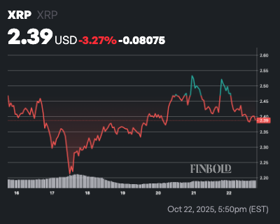 At the time of reporting, XRP was trading at $2.39, down 2.5% in the past 24 hours and over 3% on the week.
