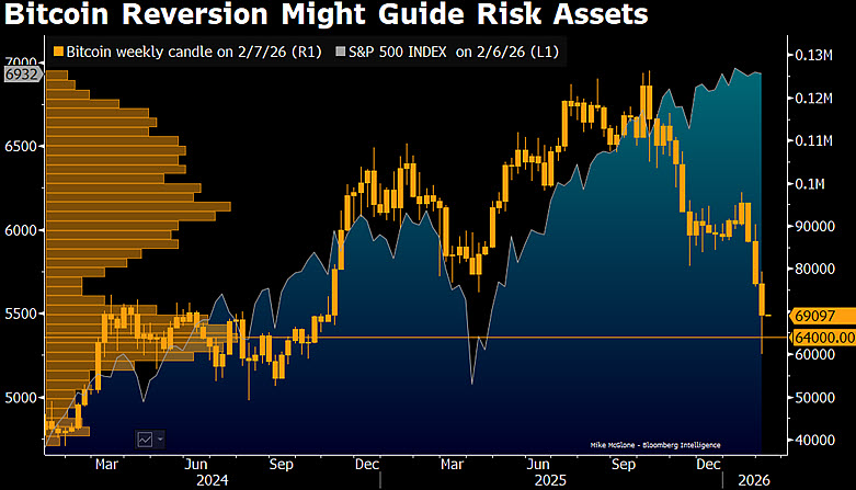 In an X post on February 7, McGlone stated that Bitcoin is a product of the post–global financial crisis environment, where abundant liquidity fueled a prolonged inflation in risk assets. As that cycle matures, Bitcoin appears to be gravitating back toward its historical mean and most frequently traded range, which aligns closely with the $64,000 level he highlighted.