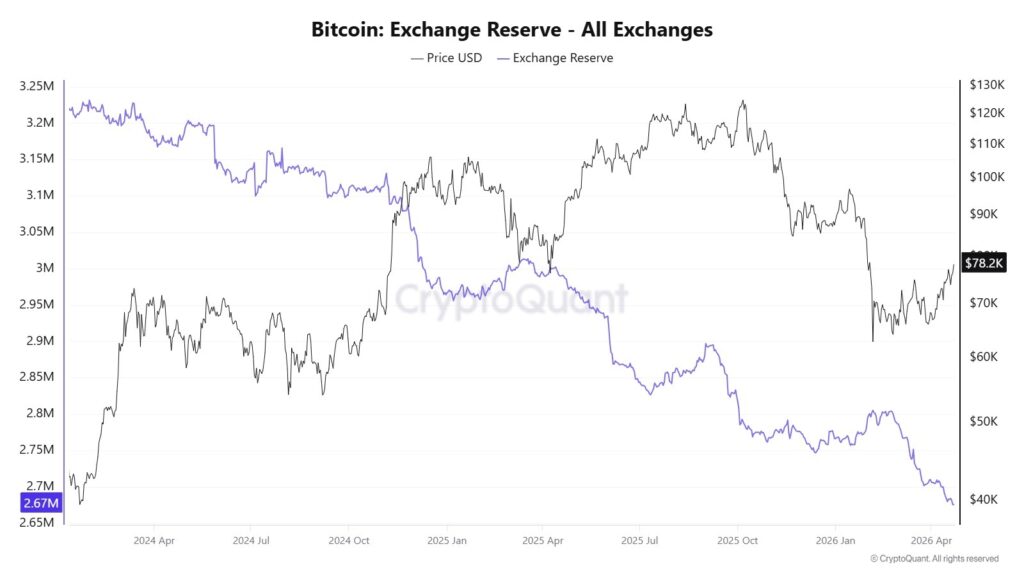 Since Bitcoin price bottomed earlier in February, its supply on all crypto exchanges has fallen to a multi-year low of about 2.67 million BTC at the time of publication, as per metrics from CryptoQuant. As such, the current Bitcoin consolidation differs from that observed in the fourth quarter of 2025, as investors were depositing funds into exchanges, thereby adding bearish pressure.