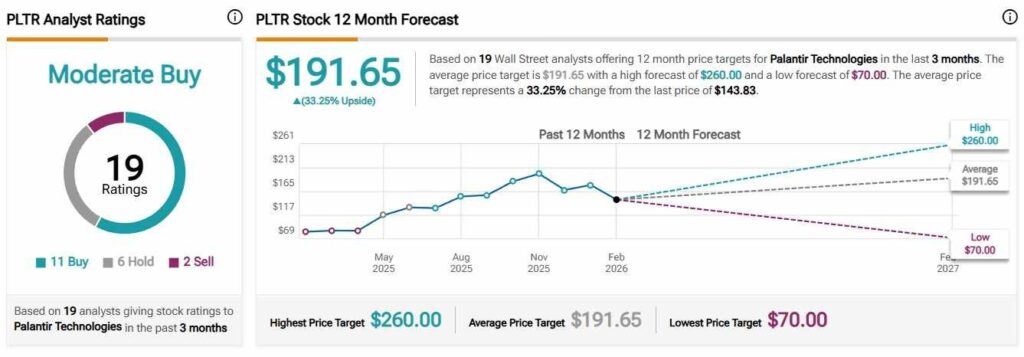 Although the overall rating for PLTR equity is a somewhat indecisive ‘Moderate Buy,’ per the data Finbold retrieved from TipRanks on February 11, the balance of revisions in February has been overwhelmingly bullish.