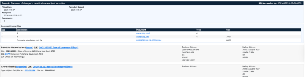 Nikesh Arora PAWN insider buy. Source: SEC