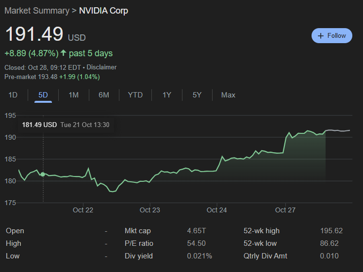 As a result, Nvidia stock, which was already up 4.87% on the five-day chart, rose more than 1% in pre-market as well, trading at $193.48 at press time.