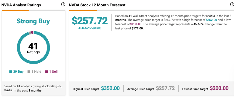 The analysts project an average target of $257.72 over the next 12 months, implying a potential 45.6% upside from Nvidia’s closing price. The most optimistic forecast places the stock at $352, while the lowest estimate sits at $200.