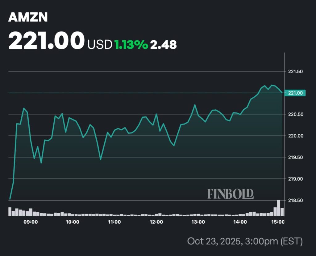 AMZN stock closed the final bell on Thursday, October 23 trading at $221.09 with a market capitalization of $2.36 trillion, supported by solid fundamentals including revenue growth of nearly 11% over the past year.
