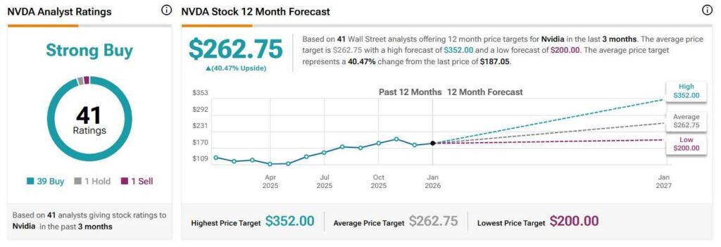 Average Wall Street analyst rating and 12-month forecast for NVDA stock. Source: TipRanks