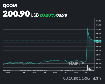 Qualcomm’s (NASDAQ: QCOM) stock is skyrocketing in double figures, marking one of its strongest single-day performances this year.