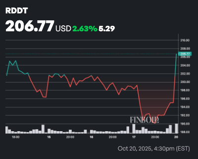 Reddit (NYSE: RDDT) is surging higher, climbing 6% to $206.77 as of early trading on October 20.