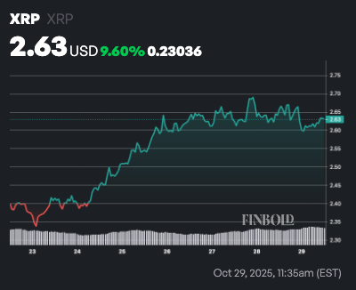 As of press time, XRP was trading at $2.63, having plunged 0.5% in the past 24 hours, while on the weekly timeframe, the token is up almost 10%.
